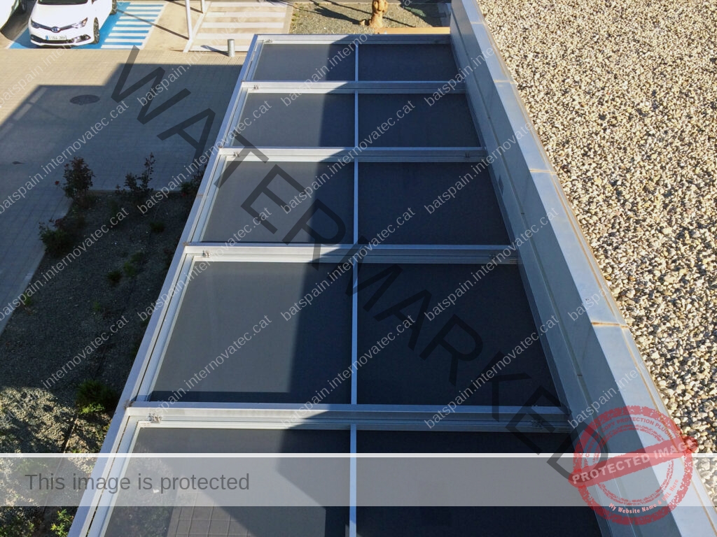 Gracias al carácter autoportante de este sistema, la estructura necesaria para la sujeción de las marquesinas es mínima, resultando una estética ligera y elegante a la vez que funcional.