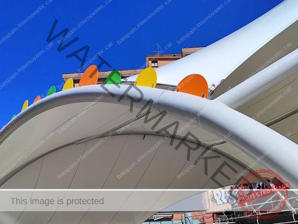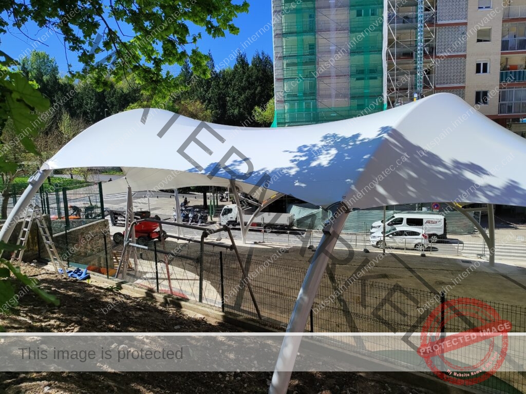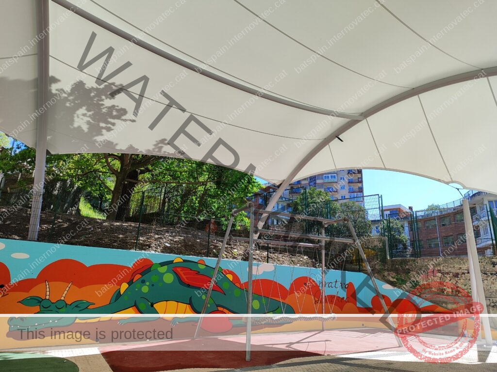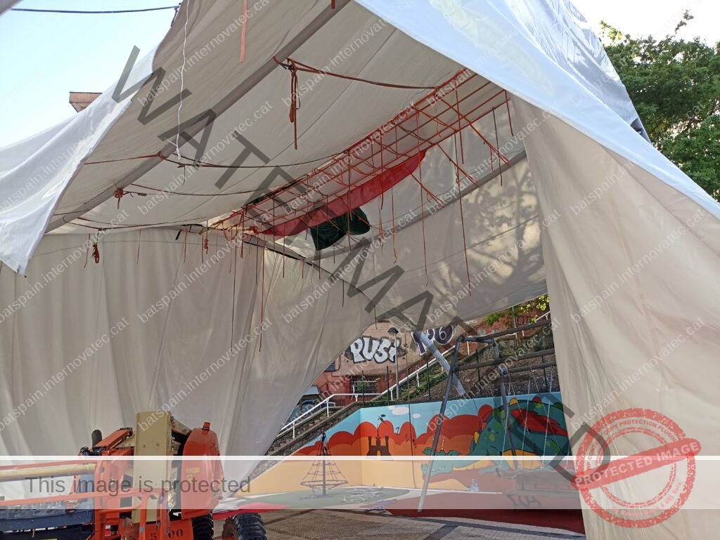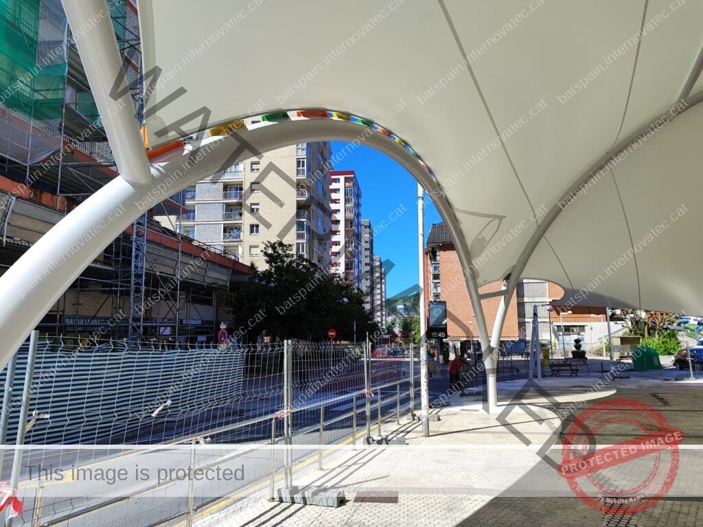 La cubierta textil más grande construída hasta la fecha en Donostia, para cubrir la zona de juegos infantiles del parque de Bertsolari Txirrita. Combinación de batbanner, bordes libres con cables junto con estructura de arcos y bípodes. Adaptada al proyecto urbano y de juegos infantiles de la plaza.